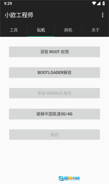 2. 功能完备:集root、刷机、网络、google服务管理等众多功能于一身。