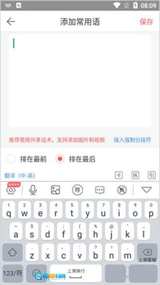 2、进入分类之后,便能够添加常用语。常用语既能直接导出,也能直接从共享话术中导入。