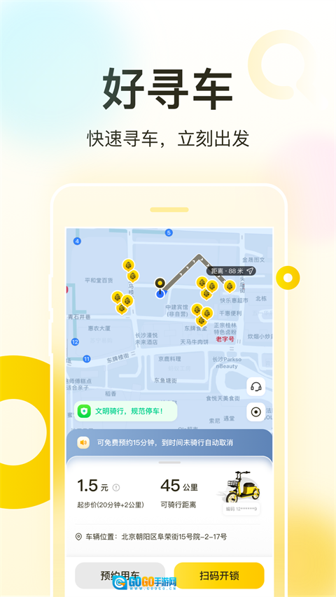 1. 车辆找寻:借助地图定位功能,用户能够迅速发现周边的共享电动车,并查看车辆状态与剩余电量。