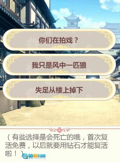 怎样才能显得合乎逻辑呢?这得结合故事来分析。就像在第一关,我们穿越过来后,碰到了一位王爷。王爷询问你为何突然出现时,给出了三个回答选项,分别是失足、拍戏以及风中一匹狼。接下来,我们就详细剖析一下这三个选项。