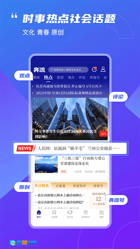 奔流新闻,其前身为生活服务类软件掌上兰州,现已完成升级更名。借助这款软件,用户无需出门,就能知晓兰州本地热点新闻,随时畅享生活资讯服务。这里不仅有全天不间断的本地头条、在线视频直播,还有身边的热门话题,甚至涵盖娱乐福利与商城特惠。用户既可以和陌生人近距离社交,分享身边的各类动态,也能够在网上报名参加超嗨活动,与男神、女神、小鲜肉、怪大叔互动交友。不仅如此,商业活动、打折促销、房屋出租、招聘求职等信息,在这里应有尽有,每日为您送上新鲜资讯,为您的生活增添新活力!