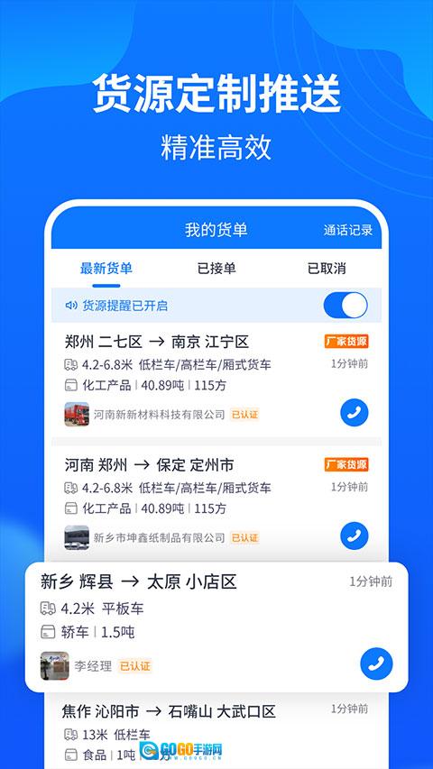 1. 一手货源即时发布,操作轻松简便,全国百万运力迅速响应。