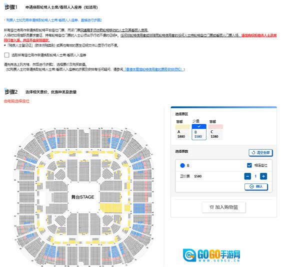 选择你想要购买的场次,并选好座位,加入购物车。页面还可以申请换取轮椅认识席/看顾人入座券,根据自己的需求选择。
