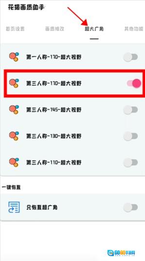 4、切换到超大广角功能,选择第三人称-170-超大视野功能开启