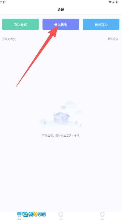 2. 在会议页面,点击顶部的“会议模板”按钮,即可进入模板选择界面。