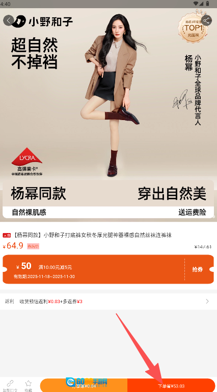 3、于商品详情页查看返利信息,随后点击“下单省”进行购买。