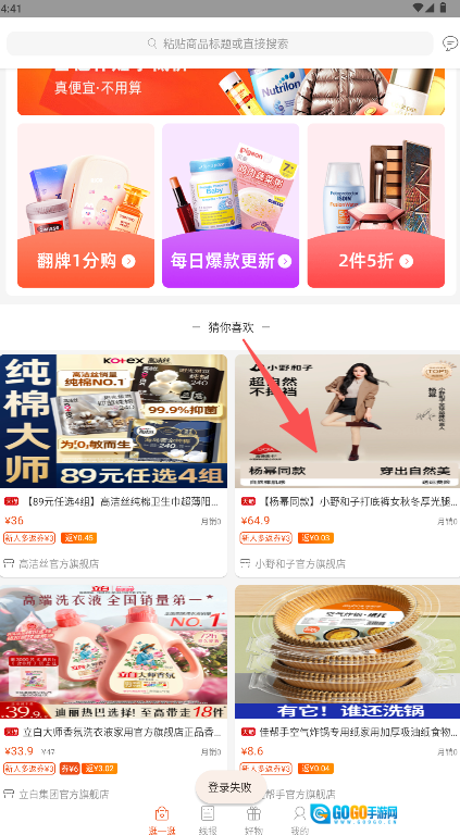 2. 在首页的“猜我喜欢”板块直接查找目标商品。