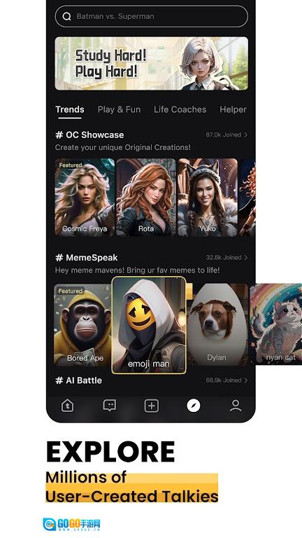《Talkie Lab国际版》,作为星野AI的国际版本,依托先进的人工AI智能大数据系统,助力你模拟生成各类环境下的对话内容,并能应用于现实工作。你还能把它视作灵魂伴侣,创建钟爱的动漫角色,将内心想法转化为具象呈现。这里玩法丰富多样,等待你去探索。别再犹豫,赶快加入这充满趣味的AI对话聊天创景之中吧!