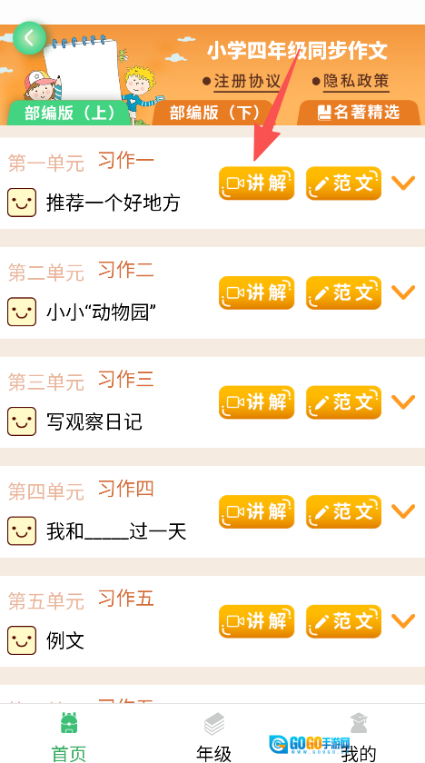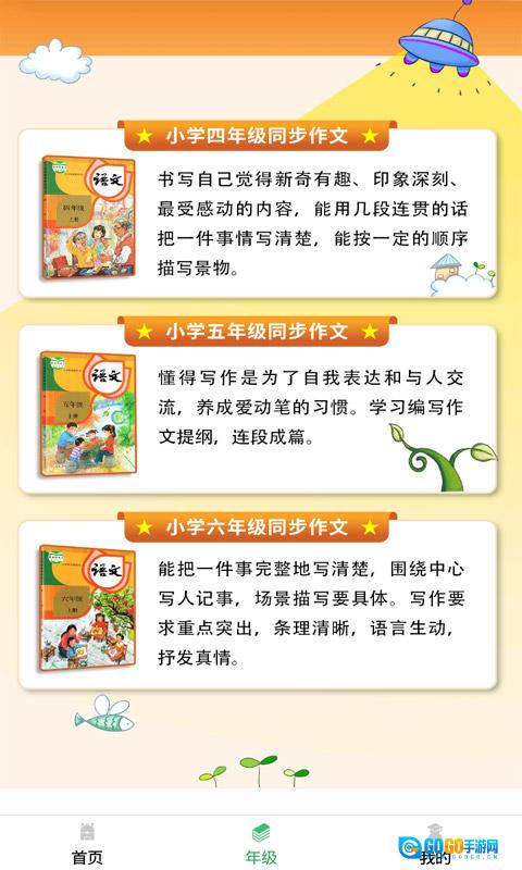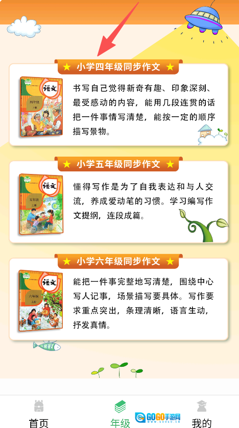 1. 开启软件,挑选年级(例如小学四年级),进入同步作文界面。