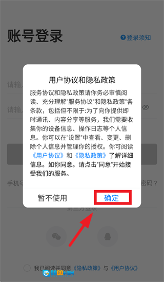 开启云中轻校,于用户协议与隐私政策提示页面点击确认。
