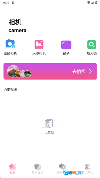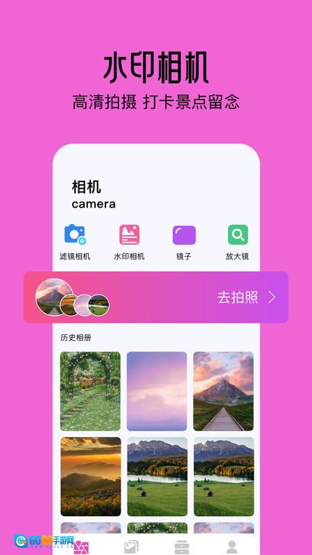 1. 相机页面设有滤镜相机、水印相机、镜子以及放大镜功能,在此页面还能够进行拍照操作。