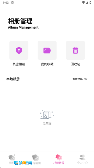 4、相册管理页面包含私密相册、我的收藏和回收站等内容。