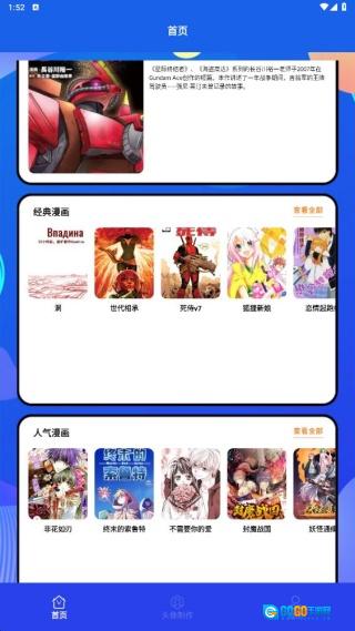 1. 完成安装后进入首页,浏览经典与热门漫画的推荐内容。