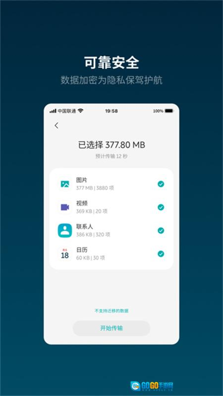6. 安全换机:仅在两台手机间建立连接实现数据传输,有效防止第三方截取数据,全方位保障手机隐私安全。