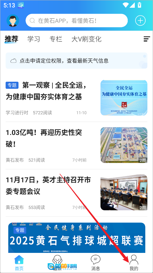 1. 开启黄石App,轻点底部导航栏里的【我的】。