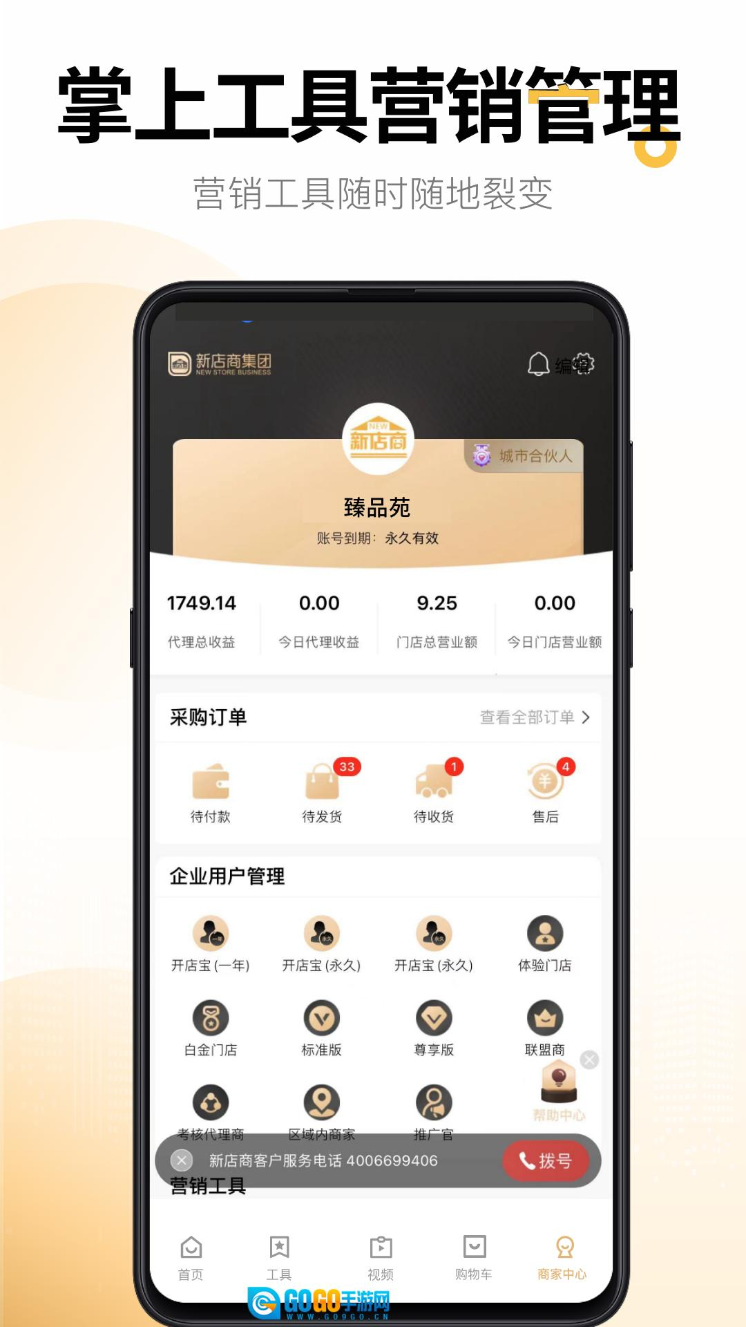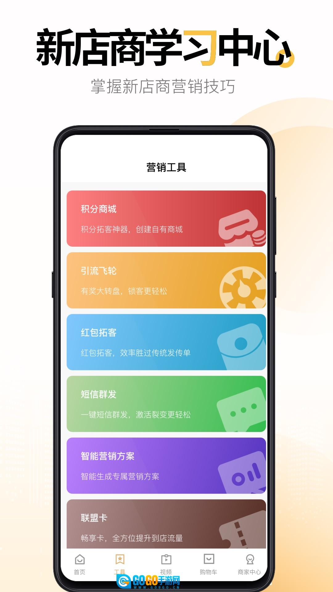 1、在手机上点击安装新店商商家,一键完成注册登录后即可使用。