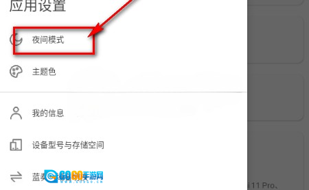 2、随后找到【夜间模式】,具体位置如图所示。