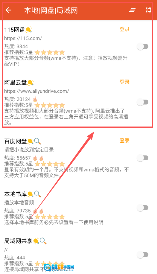2、于源管理里挑选适宜的网盘源,诸如115网盘、阿里云盘等热门选择,留意各平台对音频格式的支持状况。
