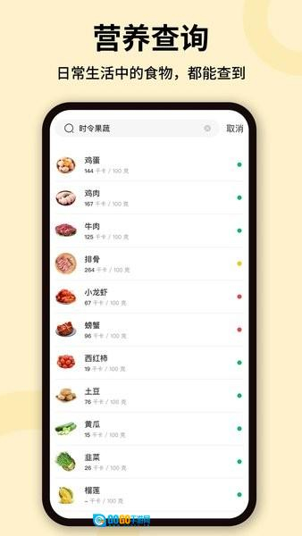 - 常见食物的数据,不仅涵盖各类常规营养素,还囊括功效、相宜相克、性味、饮食宜忌以及时令蔬果等方面的资料。