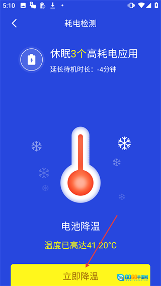 3、当出现电池降温提示界面时,点击界面上的【立即降温】按钮,即可开始执行电池降温操作。