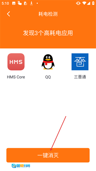 2. 于耗电检测界面,点击【一键消灭】,对高耗电应用进行处理。