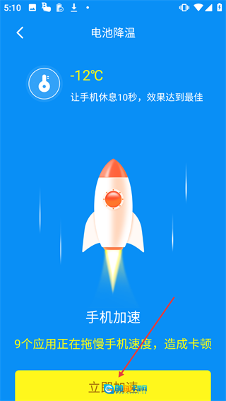4、于手机加速提示界面,点击【立即加速】,以完成手机加速操作。