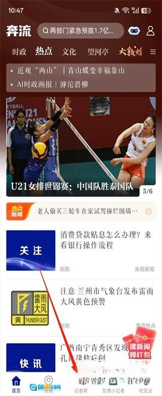 1. 打开奔流新闻客户端,完成登录操作,随后点击【记者帮】。