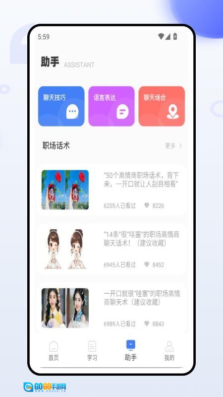 4、进入助手页面,便能浏览众多职场话术,掌握聊天技巧。