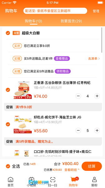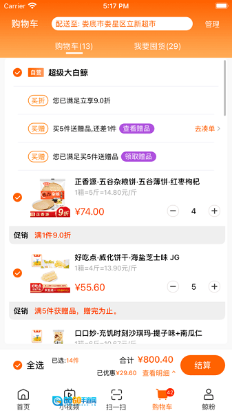 6、统一结算购物车中的商品,全选所有产品后,即可使用结算功能对所有商品进行统一结算。