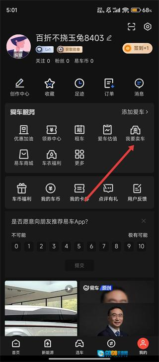 1. 打开易车应用,在【我的】界面中点击【我要卖车】选项,从而开启卖车流程。