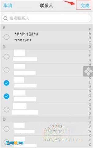 5、最后,在弹出的界面里,勾选你想要加入白名单的手机号,接着点击右上角的“完成”按钮就可以了。