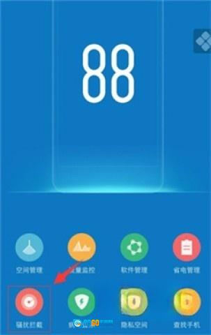1、第一步,先下载并安装i管家,安装完成后打开该应用。进入主界面后,点击位于左下角的骚扰拦截图标。