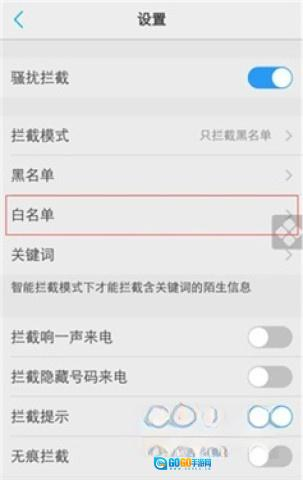 3、于设置里找寻白名单选项,随后进入该选项。