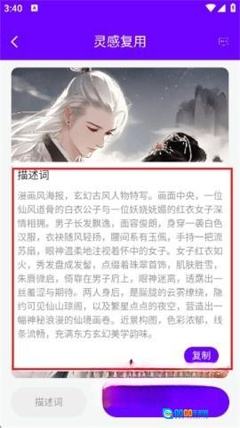 3、智能描述工具:借助软件的智能描述工具,你能够极为轻松地创作出所需的艺术作品,整个过程简单又快捷。