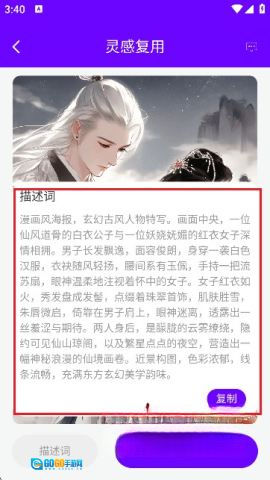 4、轻点“描述词”按钮,即可复制相关描述,便于后续使用。