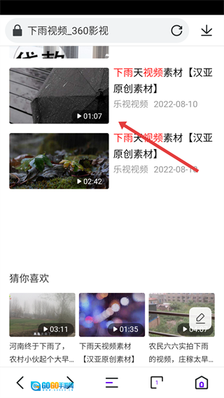 3、于视频列表里,点击您偏好的视频,例如【下雨天视频素材】,随即进入视频播放页面。