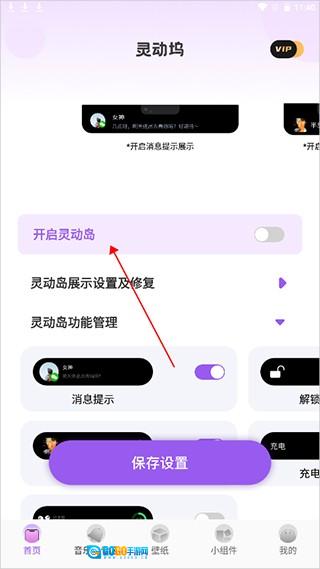 1、用户进入应用后,第一步便是在首页点击【开启灵动岛】