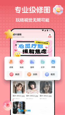 2. 专业图片编辑:具备丰富滤镜、创意贴纸以及智能拼图等功能。