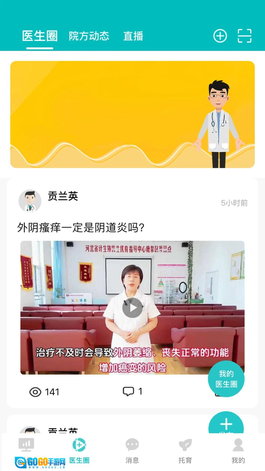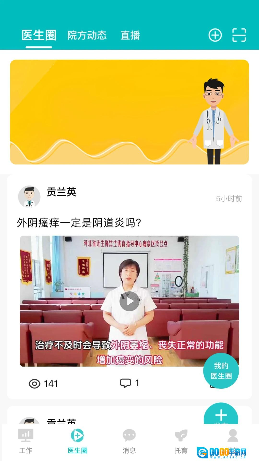 3、医生圈设有院方动态与视频直播板块,有助于医生间的互动交流及知识传播。