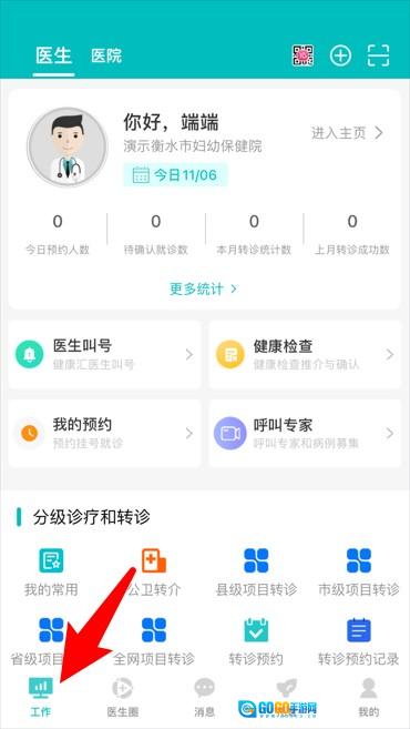 2. 医生工作台对预约数据、转诊入口、健康体检以及医生码等高频使用的功能模块进行集中展示。