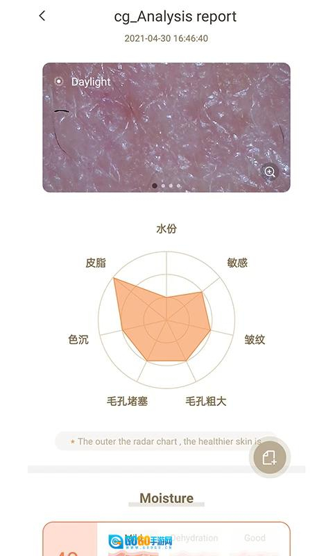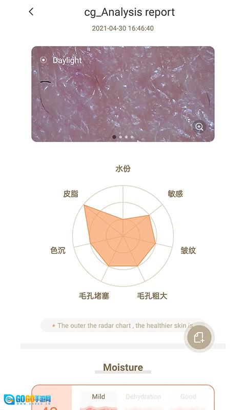 2. 皮肤监测:设备连接成功后,能够实时对用户的皮肤状况进行监测,涵盖水分、油脂、敏感性等各项指标,同时给出详尽的报告。