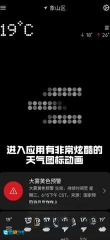 2、安装完成进入应用,映入眼帘的是炫酷的天气图标动画,科技感十足,恰似融入了nothing phone的灵魂。