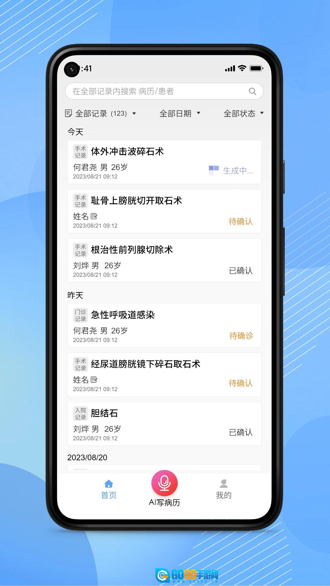 2. 用户打开软件后,在首页点击“ai写病历”,便能迅速进入门诊病历编辑界面,从而开展下一步操作。