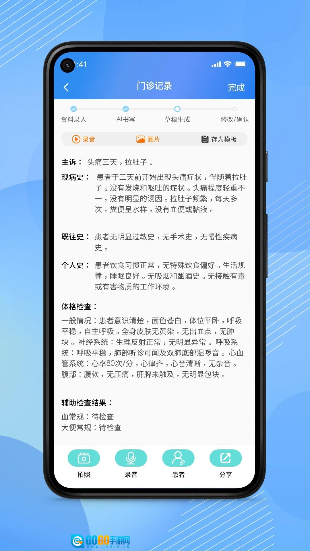 AI医助是一款极为实用的医生办公软件,具备全新功能,哪怕毫无经验也能快速上手。它有着新颖的界面设计,用户能够便捷地在线记录各类患者信息、病历等,随时随地自由查阅,助力医生给出专业的医药指导,全方位满足所有使用需求。此外,它依托智能语音识别技术,可轻松识别并精准记录医生所说内容,让用户畅享优质服务与体验。同时,该软件还提供在线备份功能,能轻松备份各类医疗数据信息,有需求的用户不容错过。