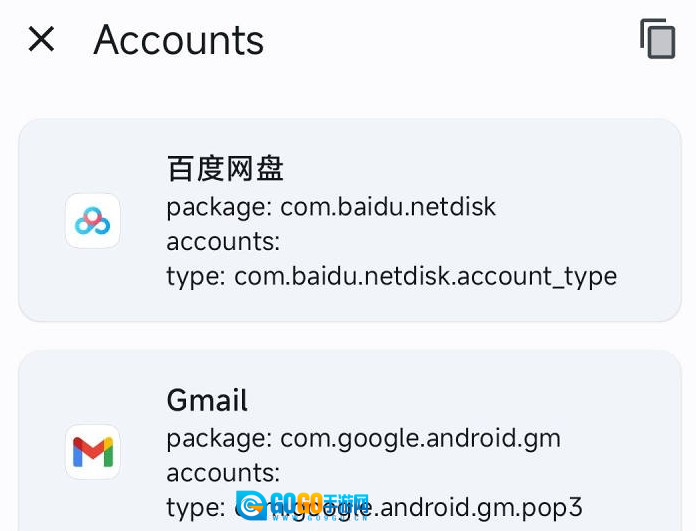 在安装文档末尾的渠道链接中,有一款Accounts应用(借助接入达成Shizuku),通过该应用可查询手机内存在哪些账号应用。