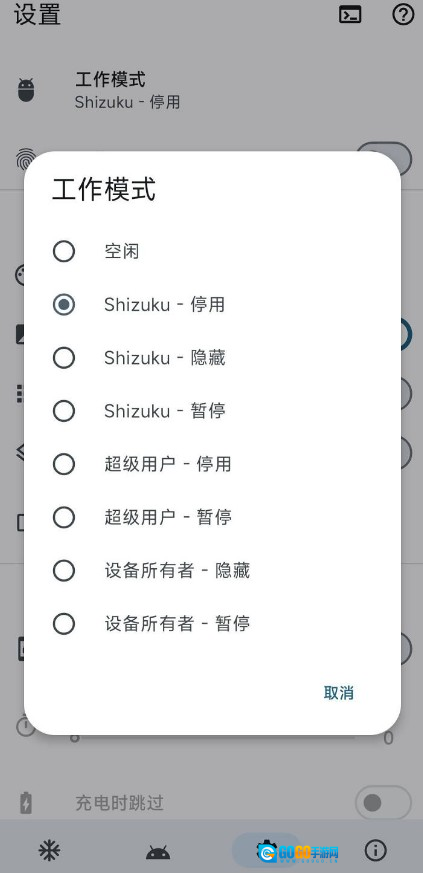 请点击右下角的冻结按钮(需注意,激活Dhizuku后要记得及时解冻,不然有可能会致使无法开机)