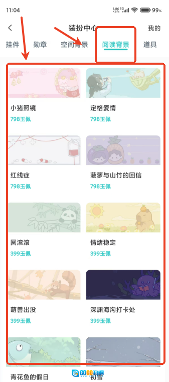 3. 来到阅读背景页面,挑选自己最喜欢的风格。