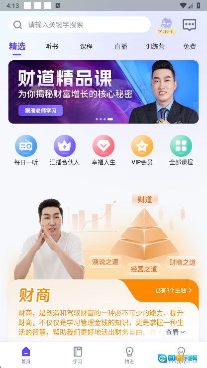 2. 当您进入首页的精选板块时,就能浏览到精心挑选的主题课。