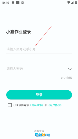 1. 来到小鑫作业登录页面,在相应位置输入【账号或手机号】,以便进行后续登录操作。