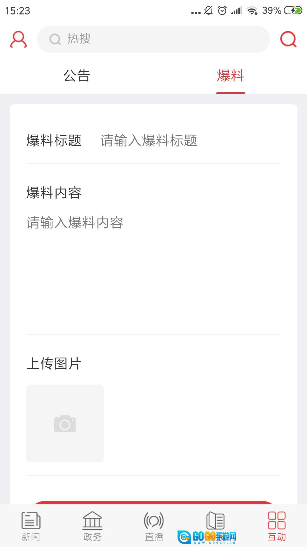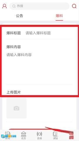 5、在界面上点击进入“互动”专区,用户在此处能够提交爆料信息,具体操作是输入爆料的标题和详细内容,同时上传与之相关的图片,从而参与到新闻互动活动之中。